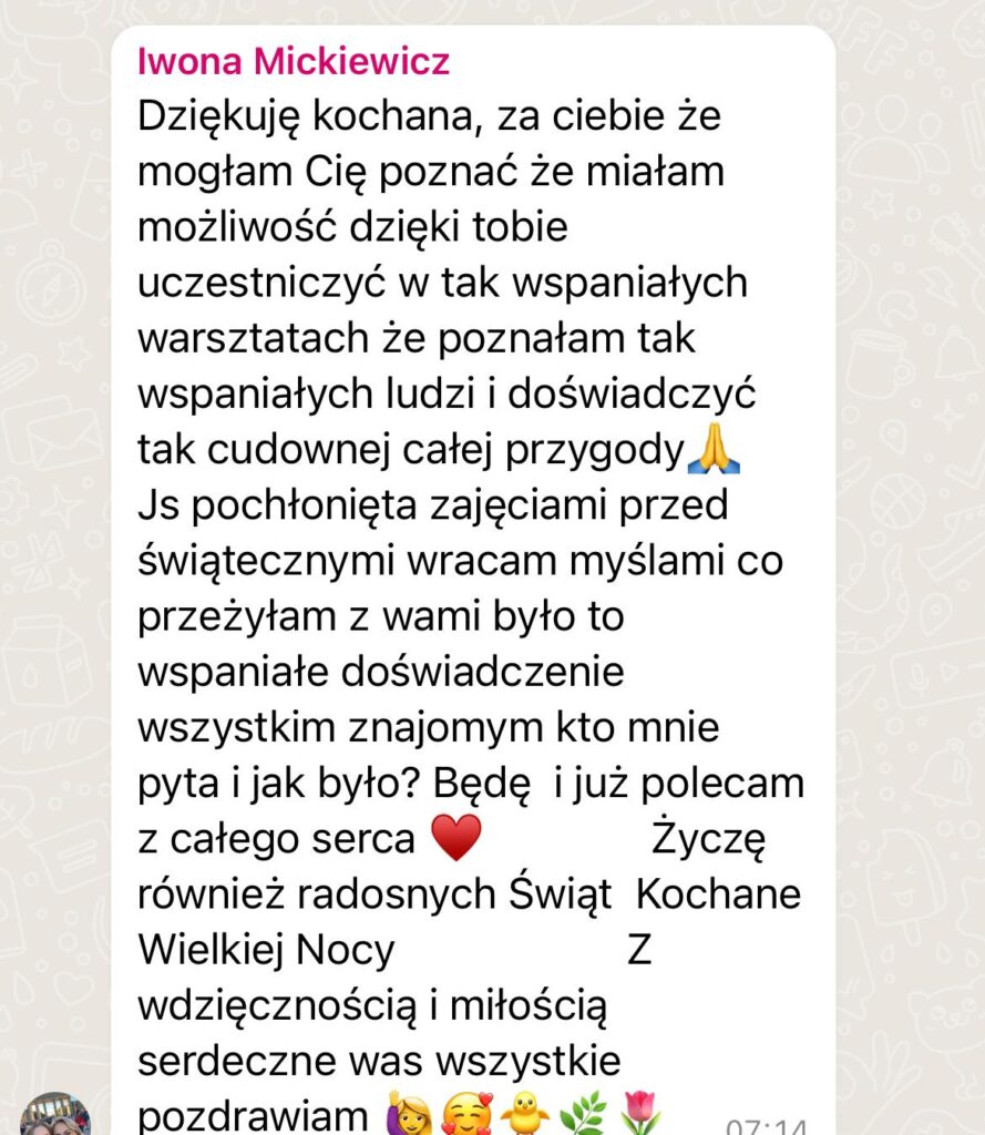 Otrzymasz narzędzia do tego jak móc odpoczywać w tej „codziennej gonitwie „, jak uwolnić swój umysł od natłoku myśli ale również zadbasz w końcu o swój wewnętrzny spokój, nauczysz się dbać o siebie, ponieważ jesteś WAŻNA.